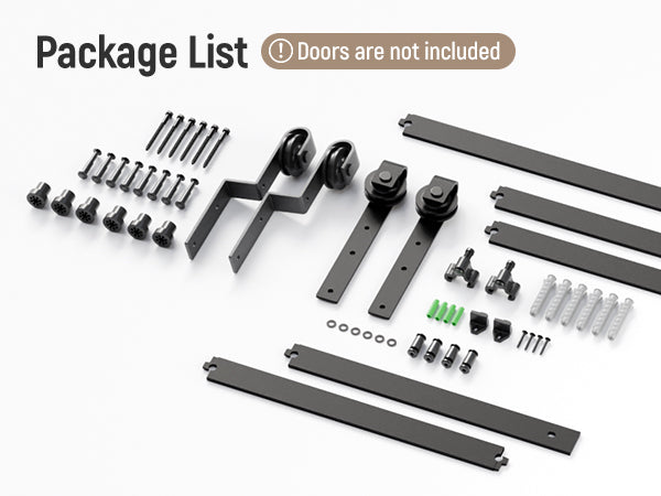 - Komplettes Schienenaufhängungssystem --- 13.6FT Schiene, Schienenabstandshalter, 4 x Rollen, 4 x Türstopper, 4 x Anti-Jumper, 2 x Bodenführung. NUR Hardware verkaufen, KEINE TÜRPLATTE enthalten.