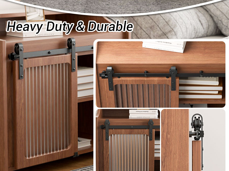3.5FT/108cm Mini Schiebetür-Hardware-Kit für Eintürige TV-Ständer, Kleiner Kleiderschrank (Keine Schranktür)