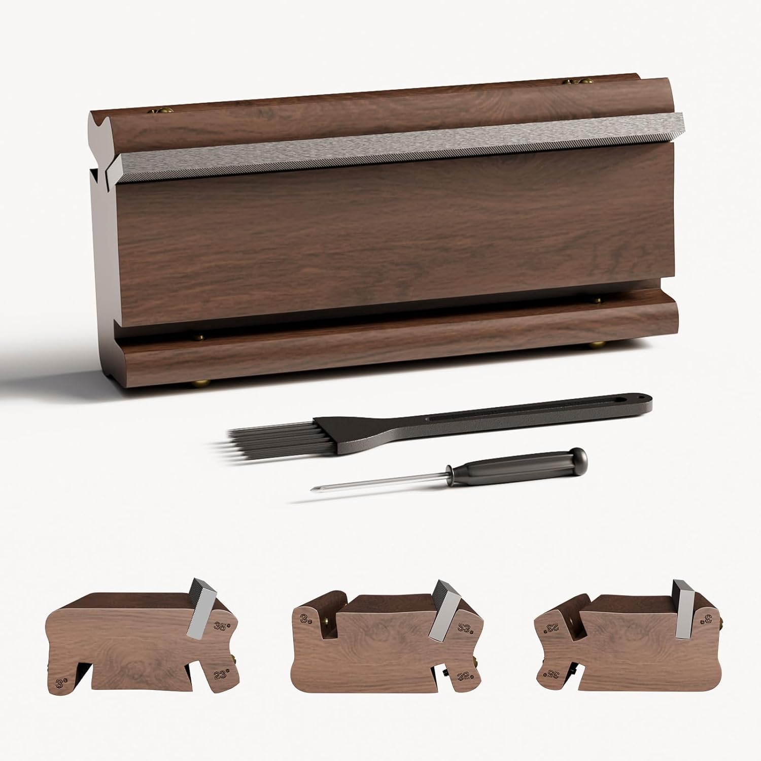 - [Instructions]: Tighten fret beveling file the screws after checking the angle; 3° angle is recommended for initial sharpening, fret budding, flush filing or uncutting; 23° angle of inclination provides ideal fret chamfers for a variety of playing styles; 35° angle allows for sharpening at a more oblique angle.