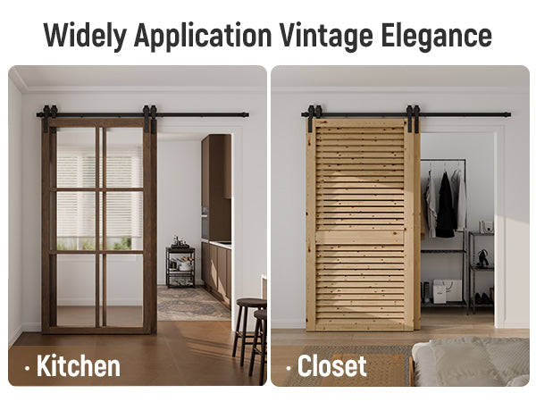 - Türgewichtskapazität --- 150kg, 12FT Bypass Double Barn Door Hardware Kit für 3cm-4cm dicke und 176cm breite Türen. Der Abstand über der Oberseite der Tür benötigt min. 16cm.
