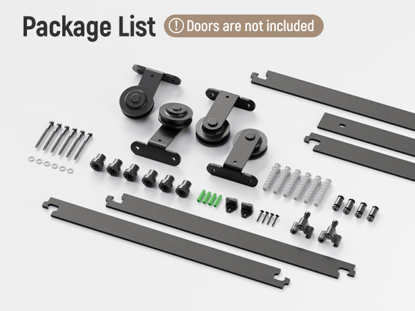4 x Türstopper: An jedem Punkt festziehen, um Ihre Tür genau zu stoppen und die Rollen auf der Schiene zu halten.