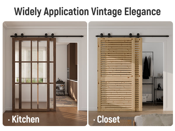 - Türgewichtskapazität --- 150kg, 5FT Bypass Double Barn Door Hardware Kit für 3cm-5cm dicke und 70cm breite Türen. Der Abstand über der Oberseite der Tür benötigt min. 16cm.