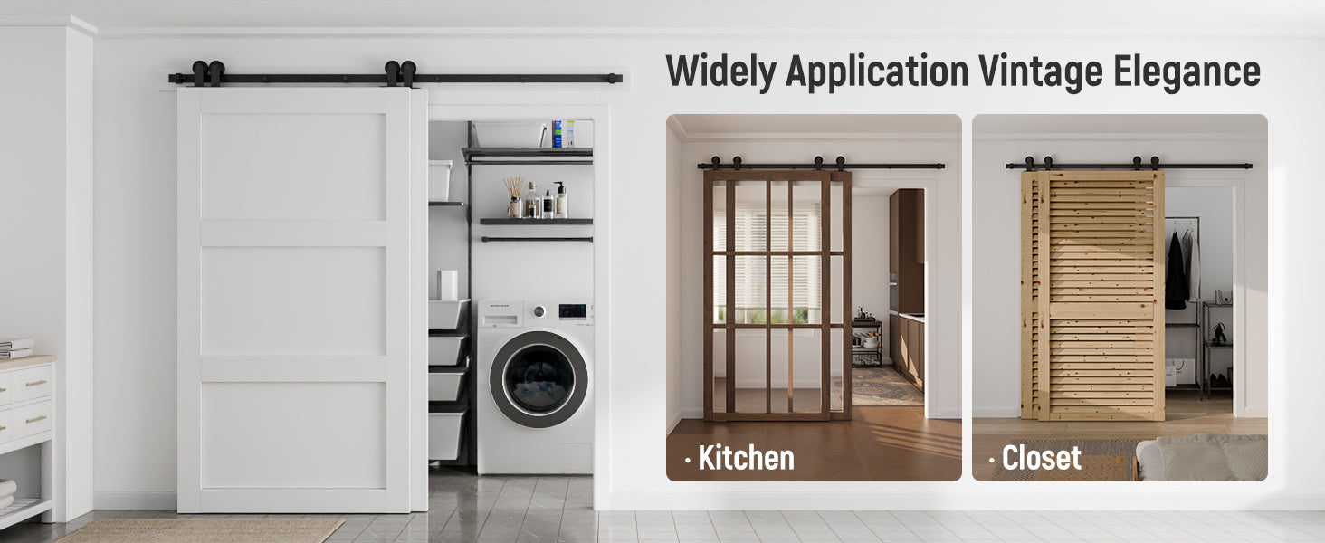 - ürgewichtskapazität --- 150kg, 7.5FT Bypass Double Barn Door Hardware Kit für 3cm-5cm dicke und 105cm breite Türen. Der Abstand über der Oberseite der Tür benötigt min. 16cm.