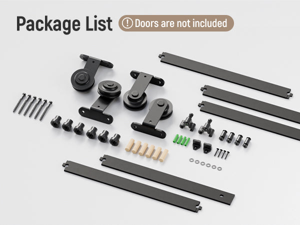 - Komplettes Schienenaufhängungssystem --- 7.5FT Schiene, Schienenabstandshalter, 4 x Rollen, 4 x Türstopper, 4 x Anti-Jumper, 2 x Bodenführung. NUR Hardware verkaufen, KEINE TÜRPLATTE enthalten.