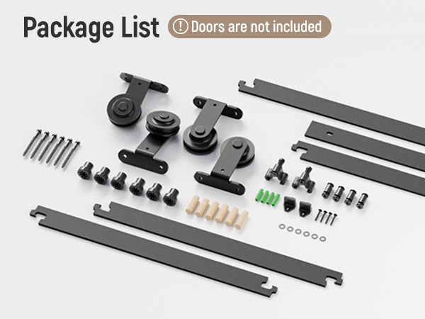 4 x Türstopper: An jedem Punkt festziehen, um Ihre Tür genau zu stoppen und die Rollen auf der Schiene zu halten.