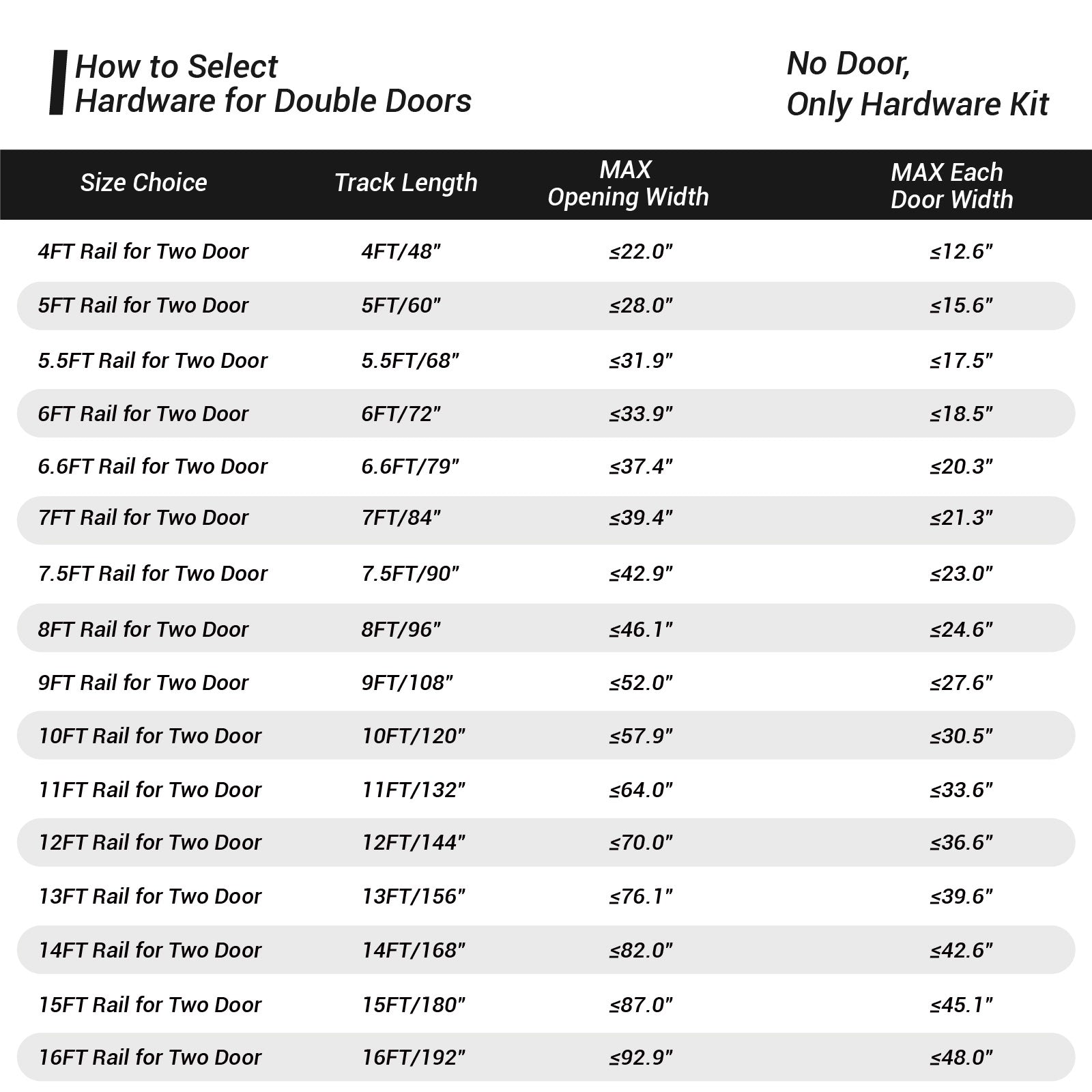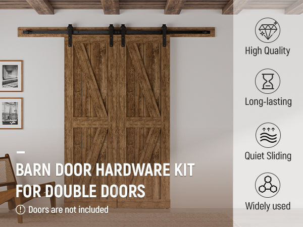 - [Paket beinhaltet]: Komplettes Scheunentor-Hardware-Kit (Spleißen von 244-cm-Schiene, Schienenabstandshalter, 4 x Rollen, 4 x Türstopper, 4 x Anti-Sprung-Scheiben, 2 x T-förmige Bodenführung, 1 x Sechskantschlüssel) * Tür nicht enthalten.