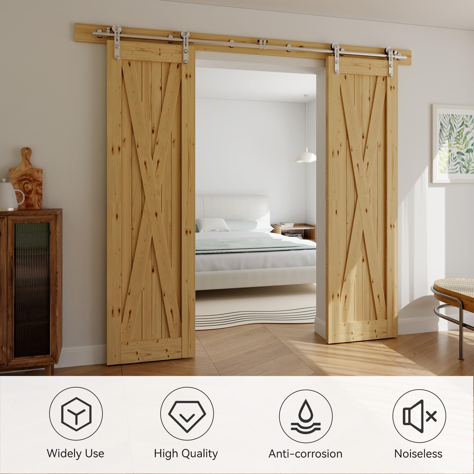 - [Vorteil für Ihr Haus]: 1. Dieses Dekor ergänzt den modernen Stil mit klassischem Scheunentor; 2. Spart nicht nur Platz, sondern ermöglicht auch das Öffnen mehrerer Räume ohne Schwingtür.
